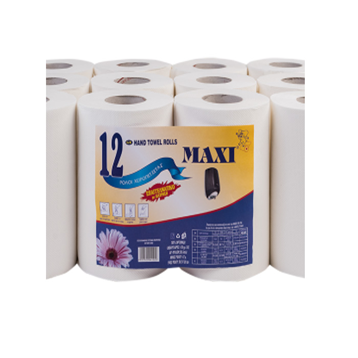 Χειροπετσέτα Δίφυλλη 450gr *12 Ρολά επαγγελματικής χρήσης 2 φύλλα, μικτό βάρος ρολού 450gr, καθαρό βάρος ρολού 418gr, διάσταση φύλλου 20.2x20cm, μήκος ρολού 47m, γκοφραρισμένο, διατρητό, αποσπώμενο μαδρέ.